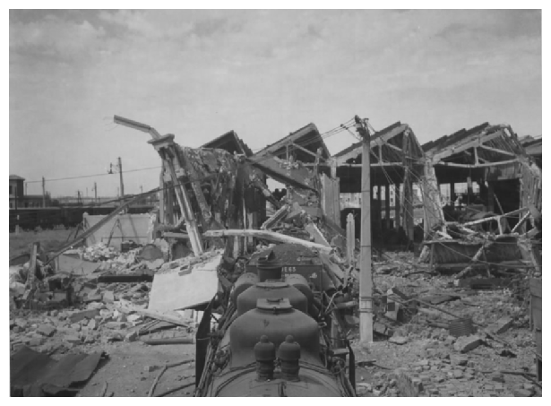 Dommages causés par les bombes aux triage de triage à Miramas, France.